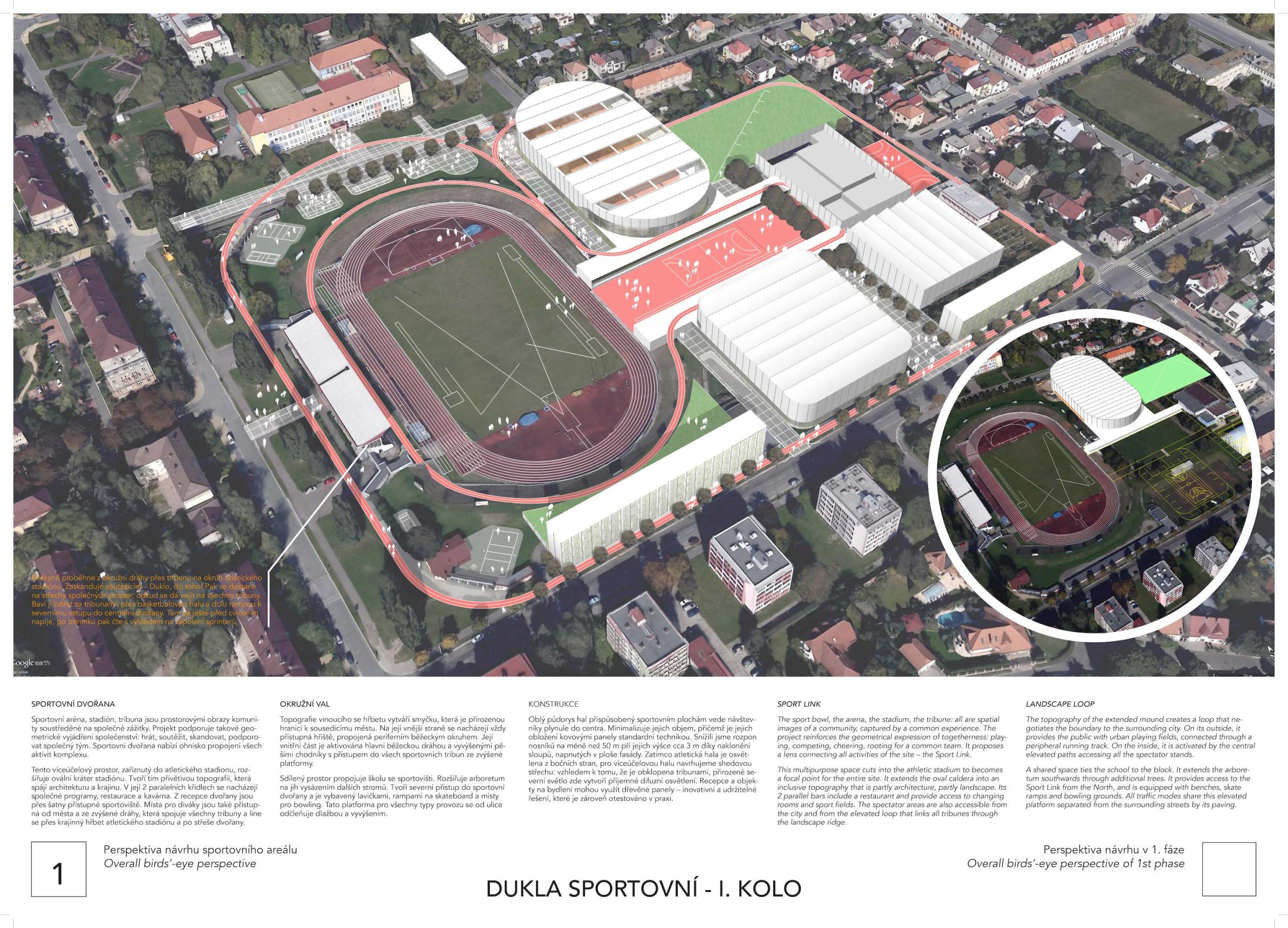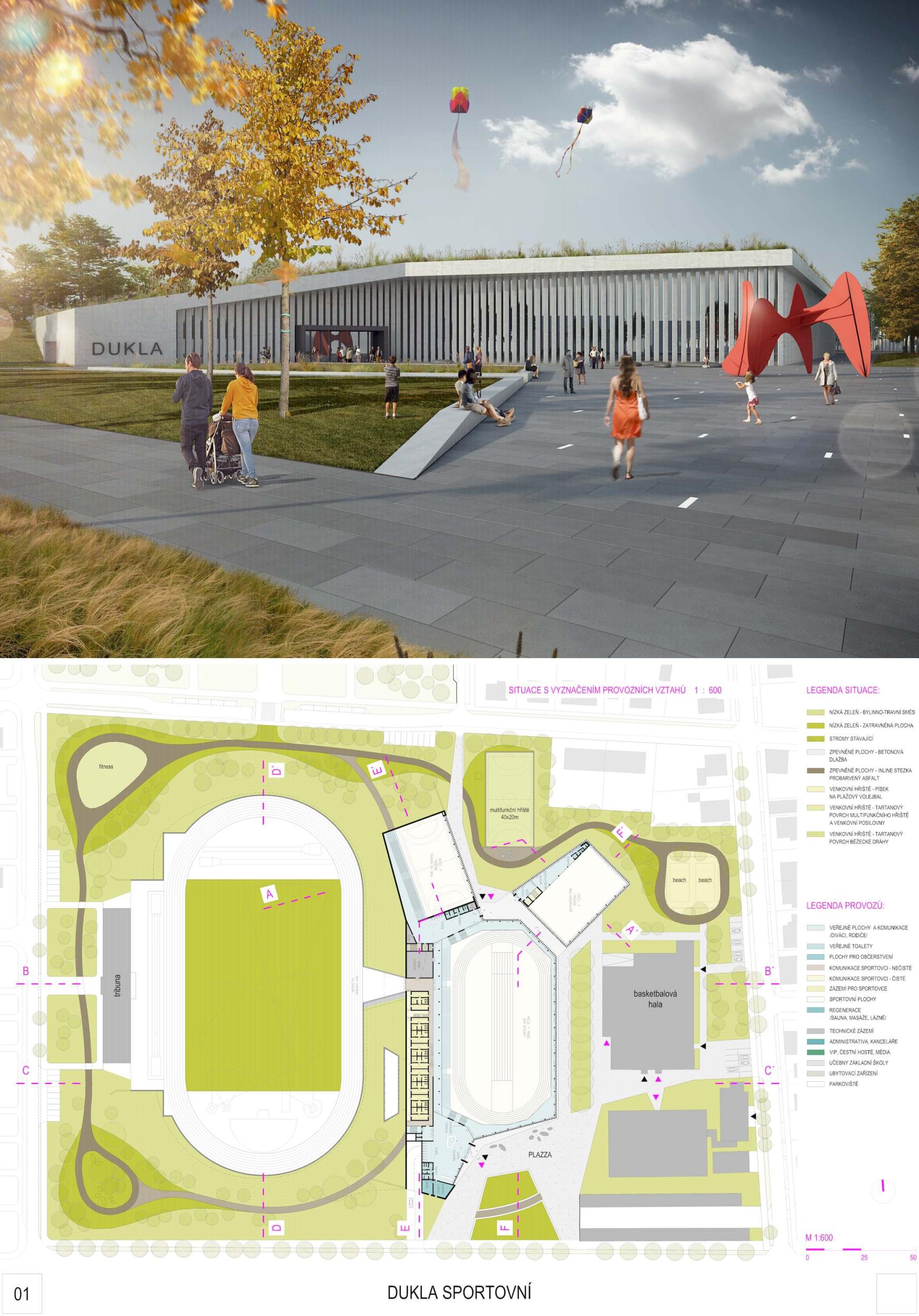 Pardubice and sports have an intimate relationship. The project is designed with the ambition to give a national character to the Dukla of sport. This starts with the inclusion of a large plaza leading to the main entrance. This generous space creates a new, modern and dynamic face for this important equipment. The whole site is disconnected from urban vibes. Boundaries are integrated into the landscape. The conception is guided by simplicity and an eco-friendly spirit. The modern complex is made with materials that respect the environment. The project aims at creating a natural and healthy landscape and architecture that improves the well-being of the user.