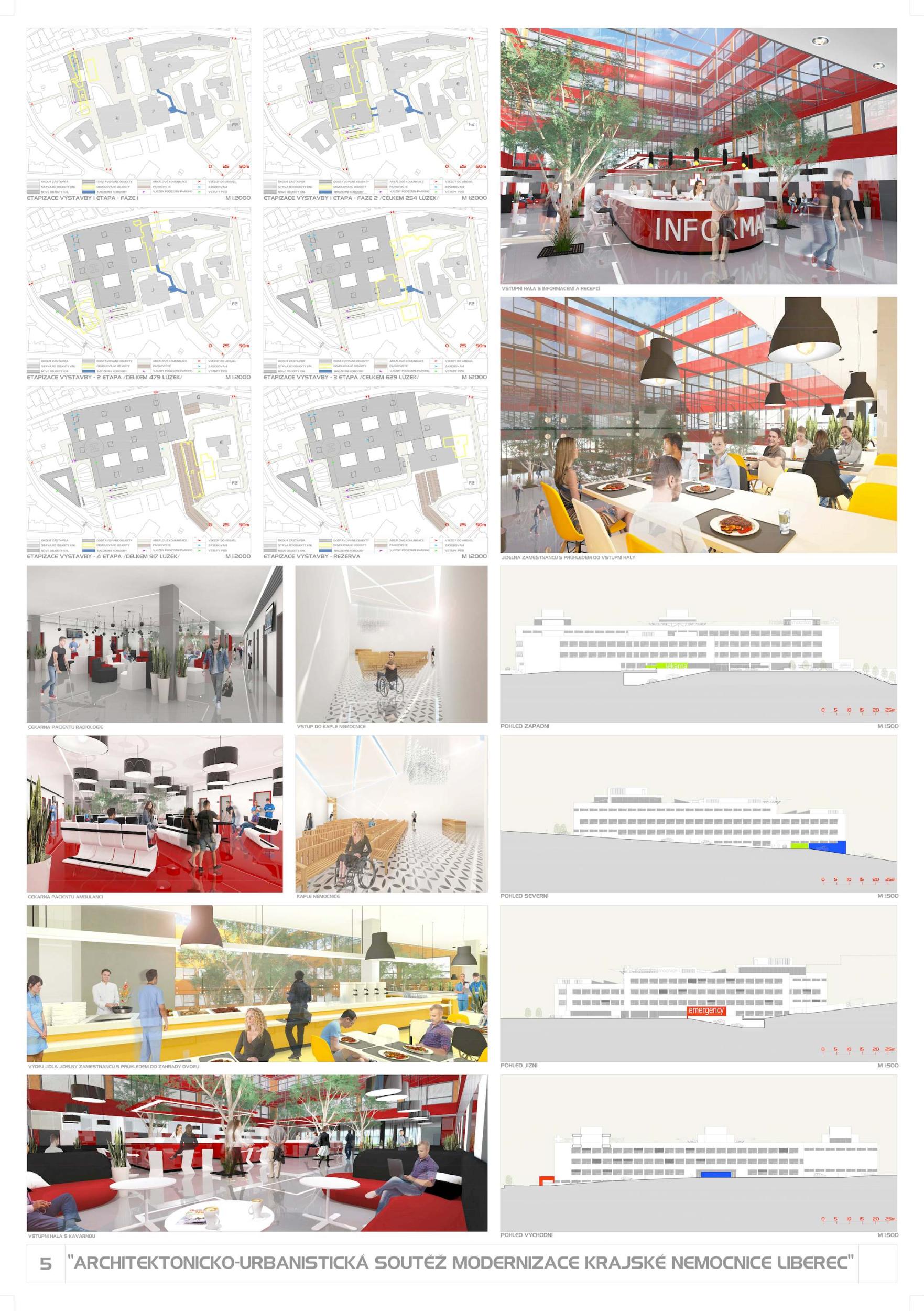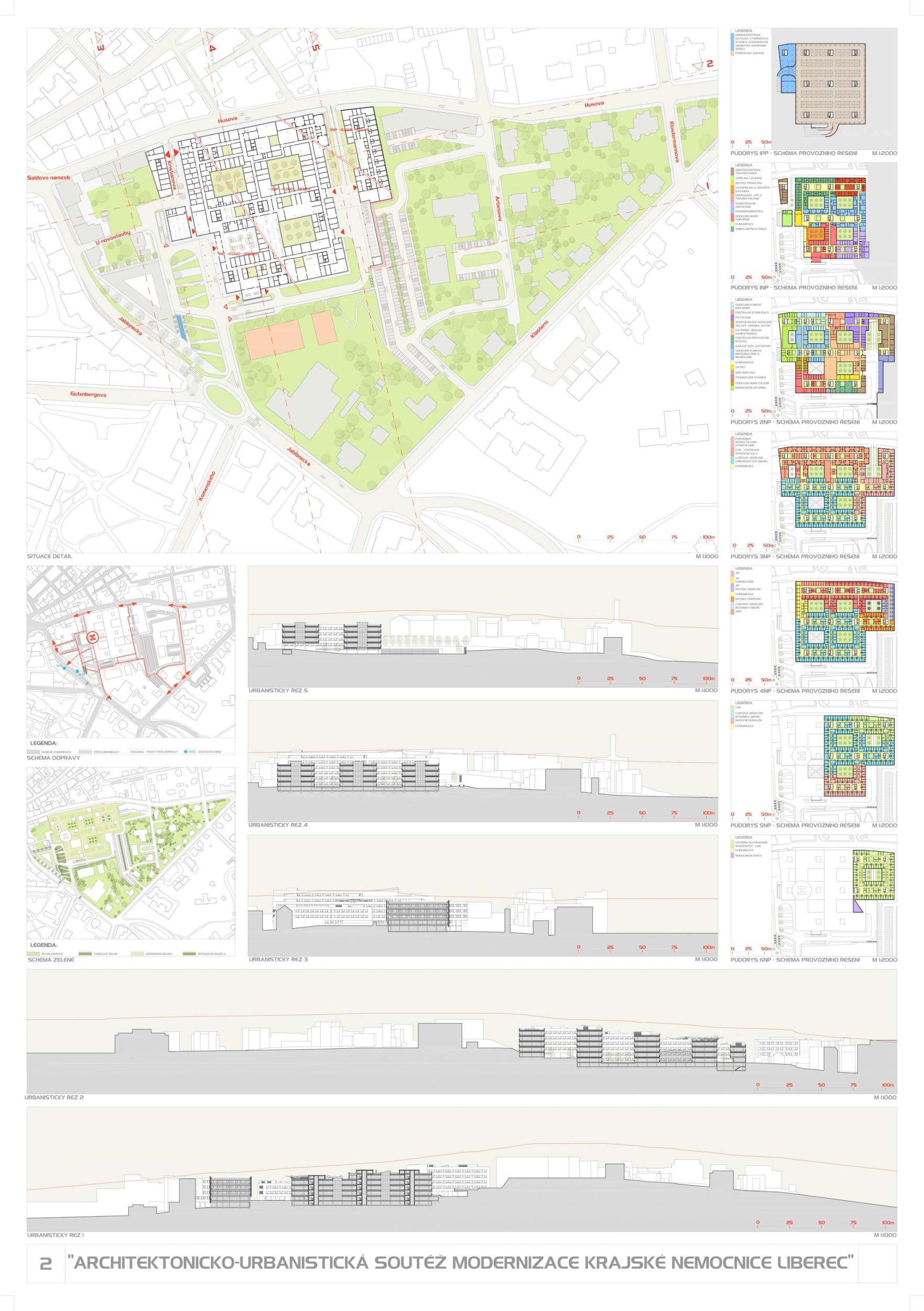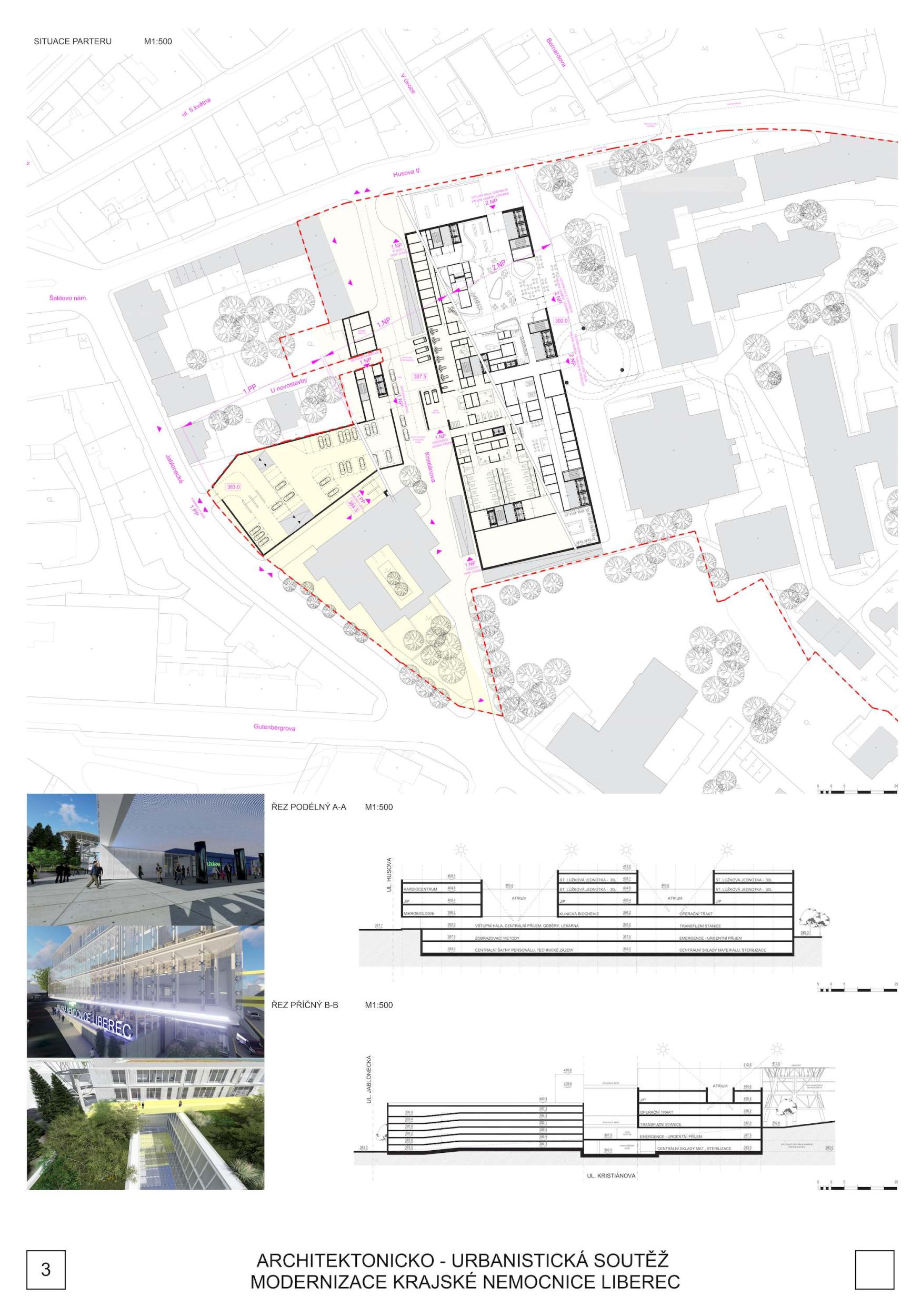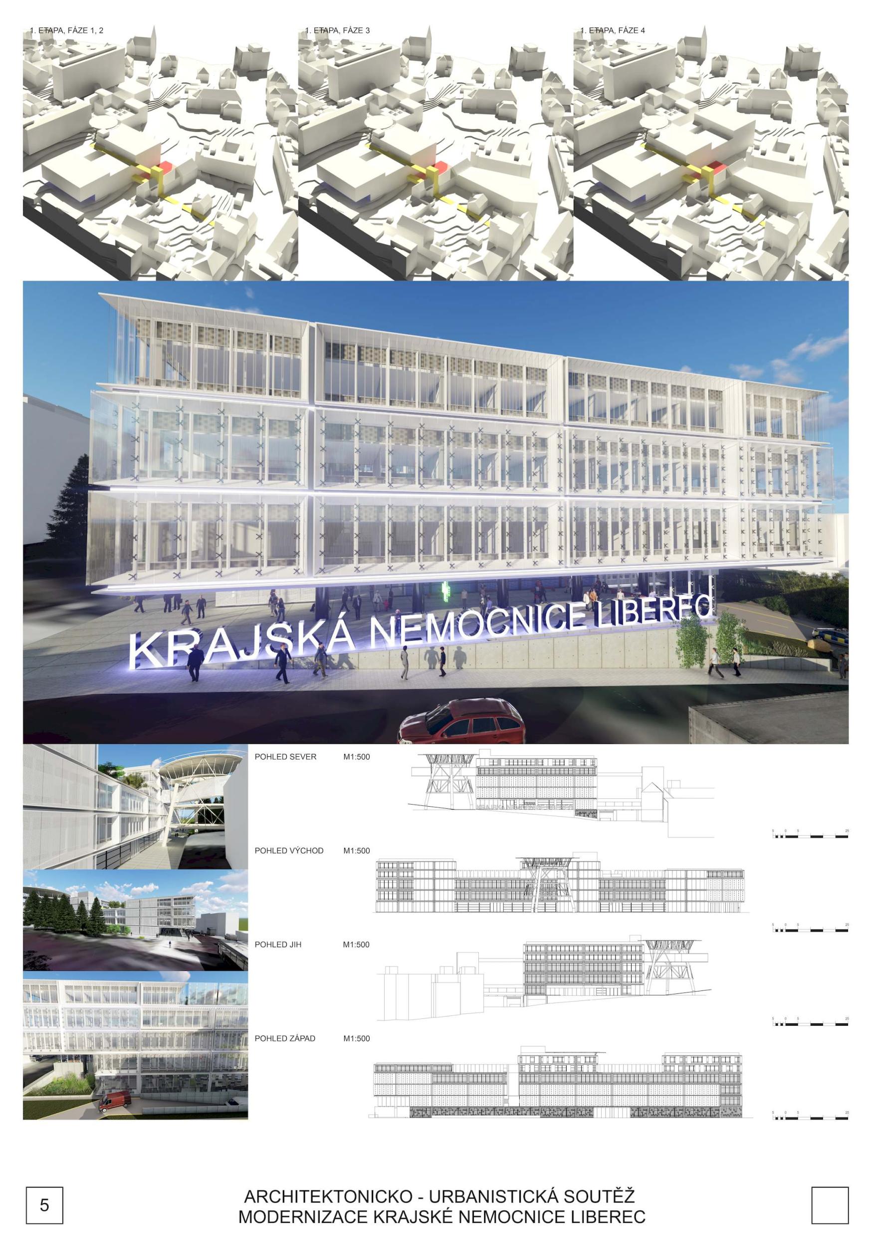 In the opinion of the jury, it is an urbanistically interesting city-forming proposal that would suitably complement the existing Liberec structure. The solution of transport serviceability and ensuring the hospital's operability during the implementation of the first phase was also evaluated positively. However, the jury considered that the operational and medical functionality of the submitted solution was insufficient, as well as the communication between the individual facilities. In the opinion of the jury, the low-capacity design could be modified, but at the cost of a significant increase in financial costs.
