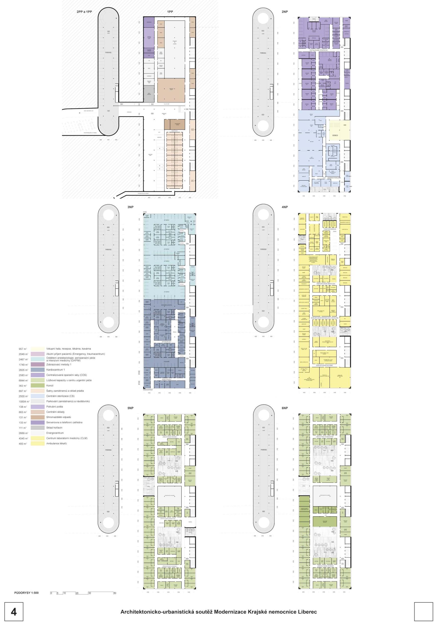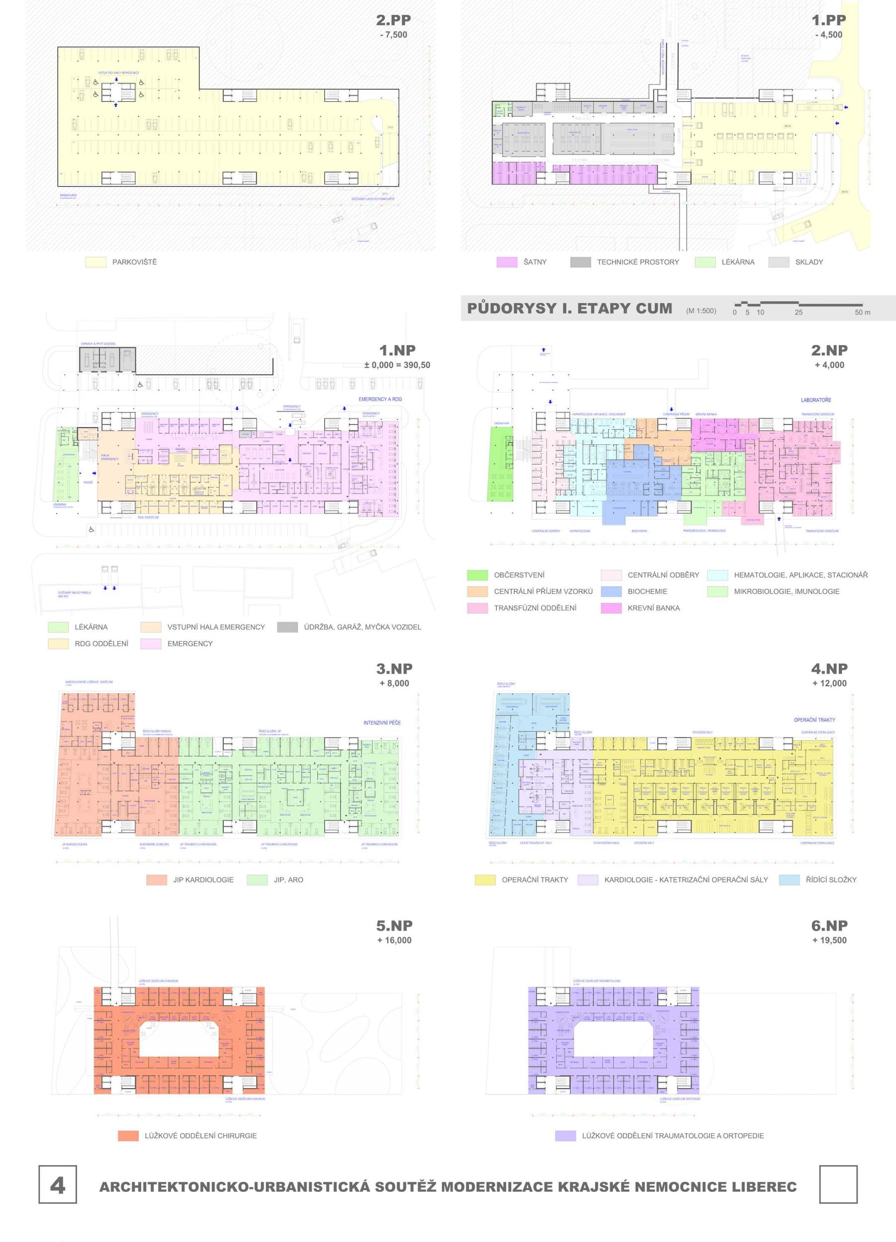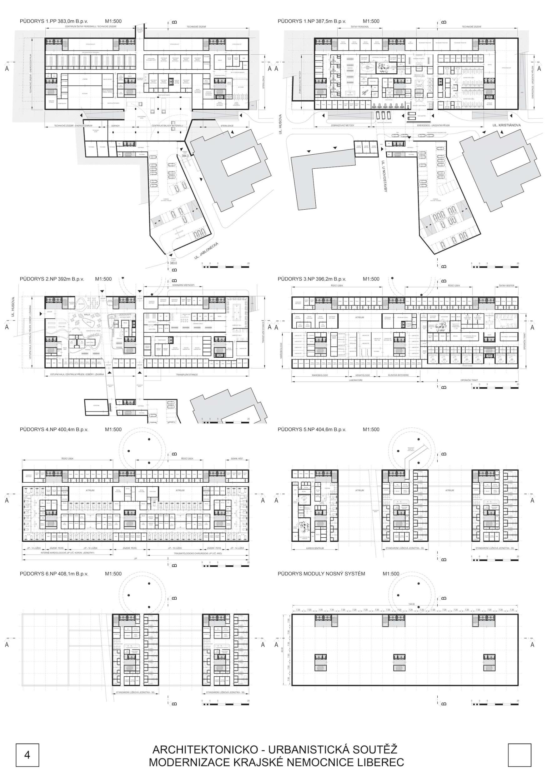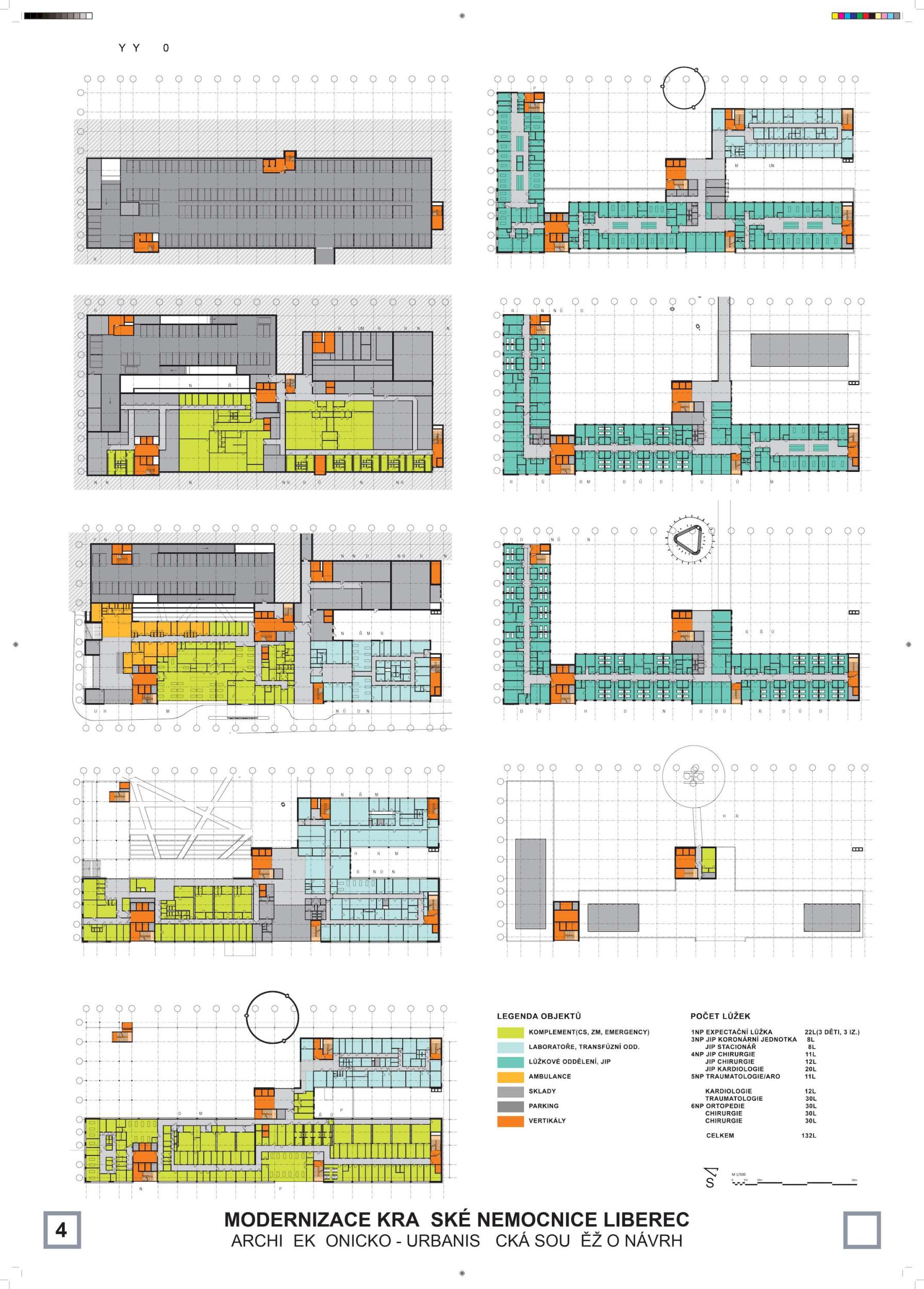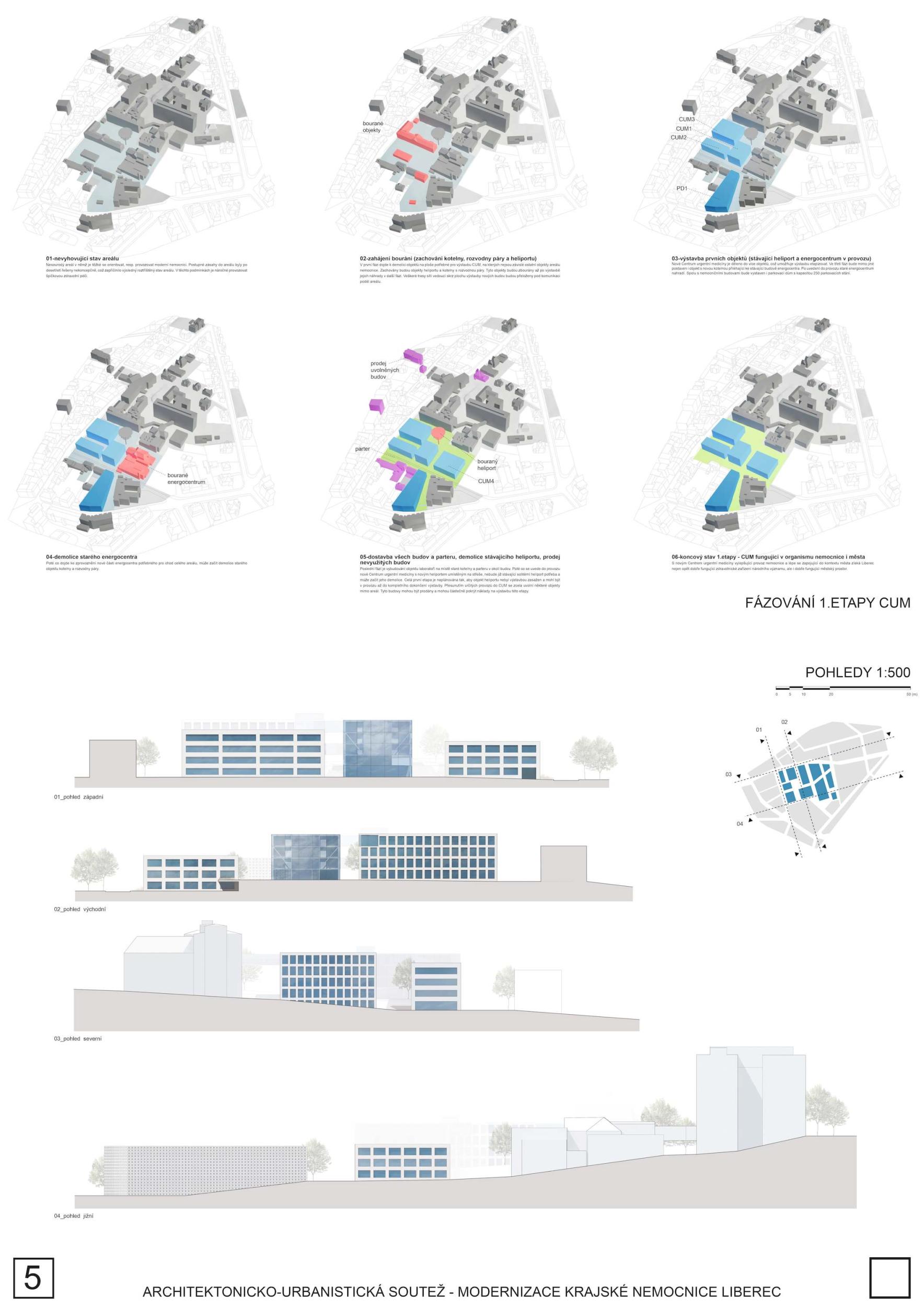 In the opinion of the jury, it is an urbanistically interesting city-forming proposal that would suitably complement the existing Liberec structure. The solution of transport serviceability and ensuring the hospital's operability during the implementation of the first phase was also evaluated positively. However, the jury considered that the operational and medical functionality of the submitted solution was insufficient, as well as the communication between the individual facilities. In the opinion of the jury, the low-capacity design could be modified, but at the cost of a significant increase in financial costs.