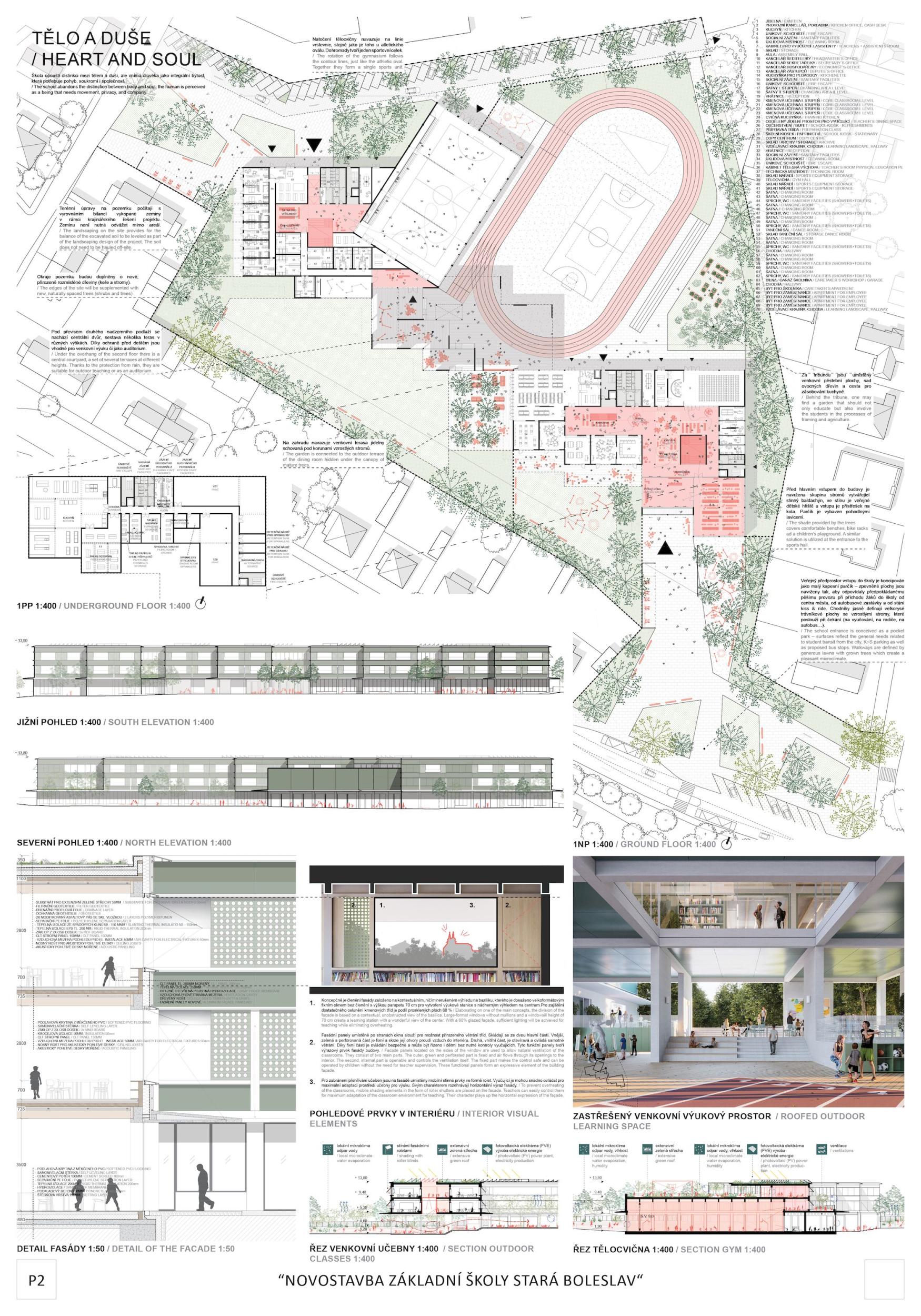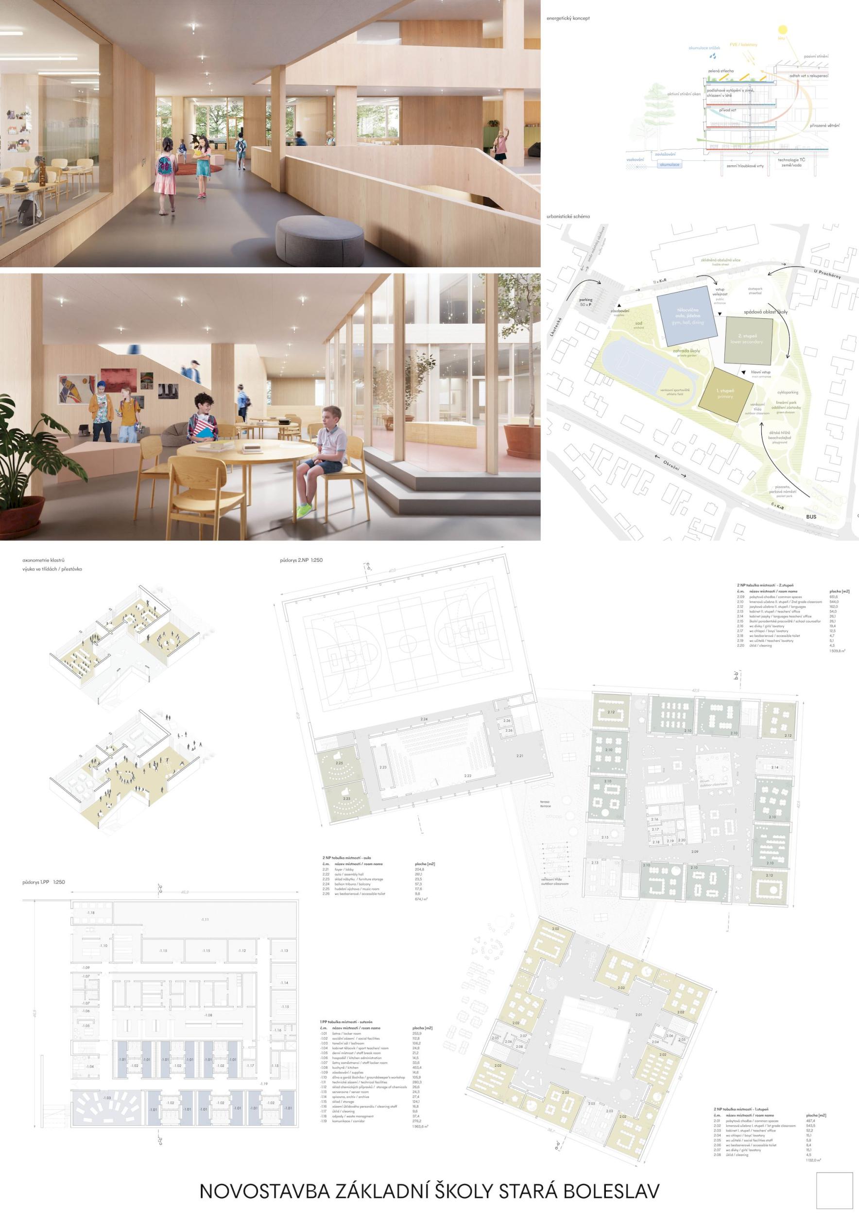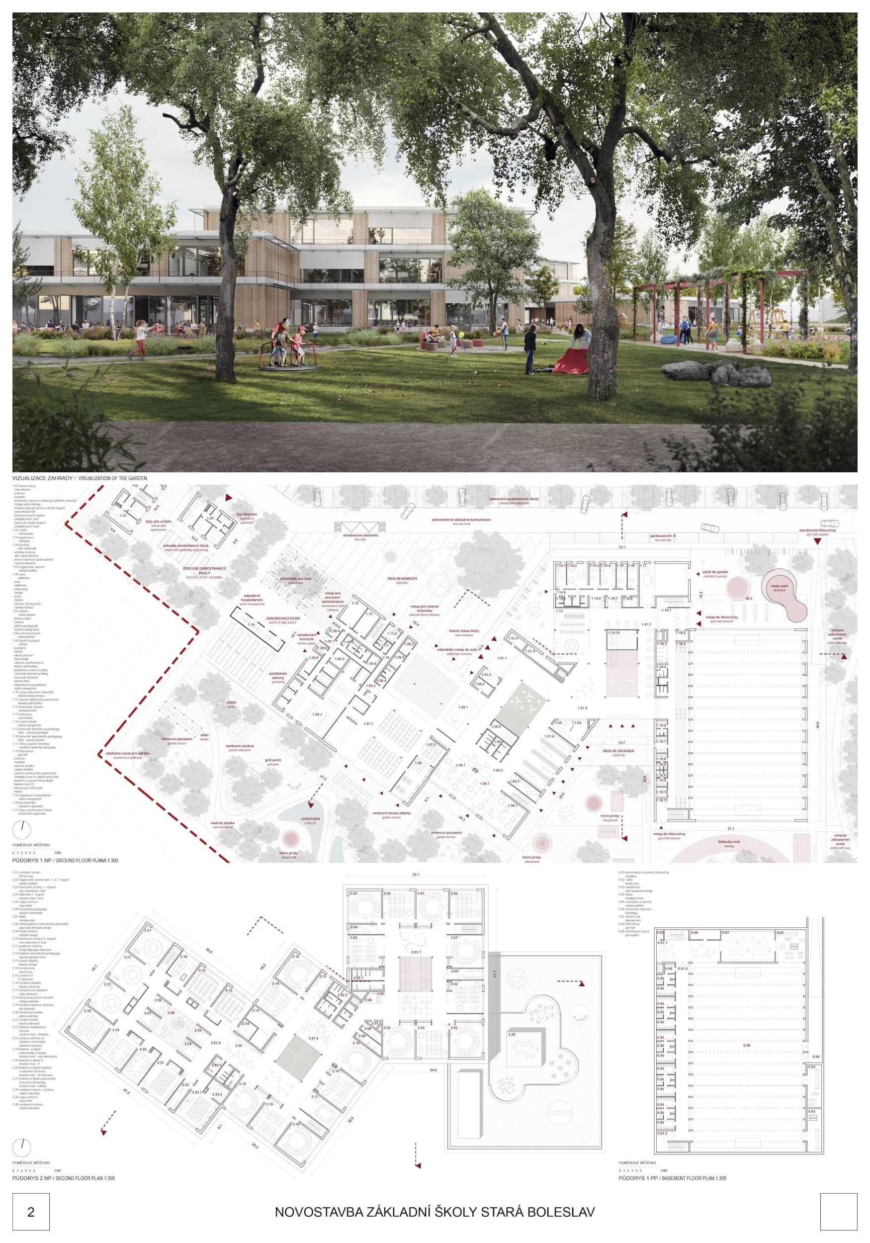 The new Primary School building in Stará Boleslav makes the most of its contextual view of the Basilica of the Assumption of the Virgin Mary and the Basilica of St. Wenceslas, thus creating an educational space with a ubiquitous reference to the school’s location. The linear low-rise mass stretches across the site, segmented via vertical green atriums defines a division that decreases the scale and forms an urban synergy between the school and its surroundings. The Learning Landscape - a continuous inner corridor that provides a multifunctional space in between home rooms, green terraces, and vertical atriums, brings a timeless and flexible approach to the design of an educational institution. The school is conceived as an amalgamation of educational, sports, and cultural elements that interconnect without defined boundaries. The rationality and simplicity of the precast concrete structure prove to be an ideal way to achieve a variable and easily reconfigurable internal layout based on the constantly evolving educational system.