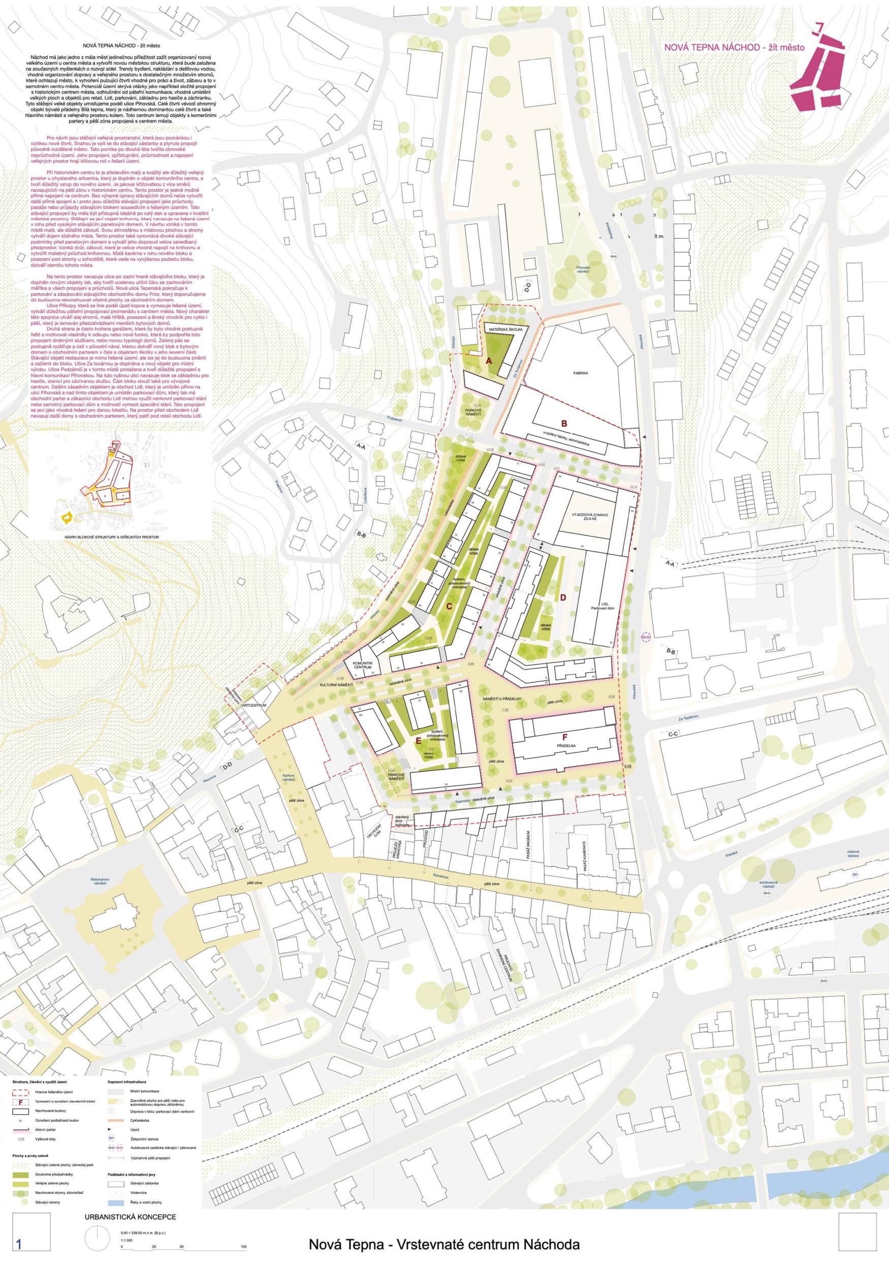 Seam of Náchod. The place where the city connects. Opportunity to sew and tie together the structure of the city with a polyseamus, highly livable, stratified and inclusive structure of the urban environment. Podzámčí, former industrial area, the place of TEPNA textile factory, located close to the historic center and Regner orchard is filled with a diverse urban structure connected together by strong bindings of public spaces. These bindings, in the context of textile factory so called stitches refer to the history of the place and lead pedestrians alongside view of the castle on the one side and the industrial landmarks of the heating plant on the other side. Compelling invitation of walk to the city center or simple routine course for everyday duties, all is designed to be fulfilled by sequential steps proposed I harmony with principles of sustainability – from economic and social to environmental.