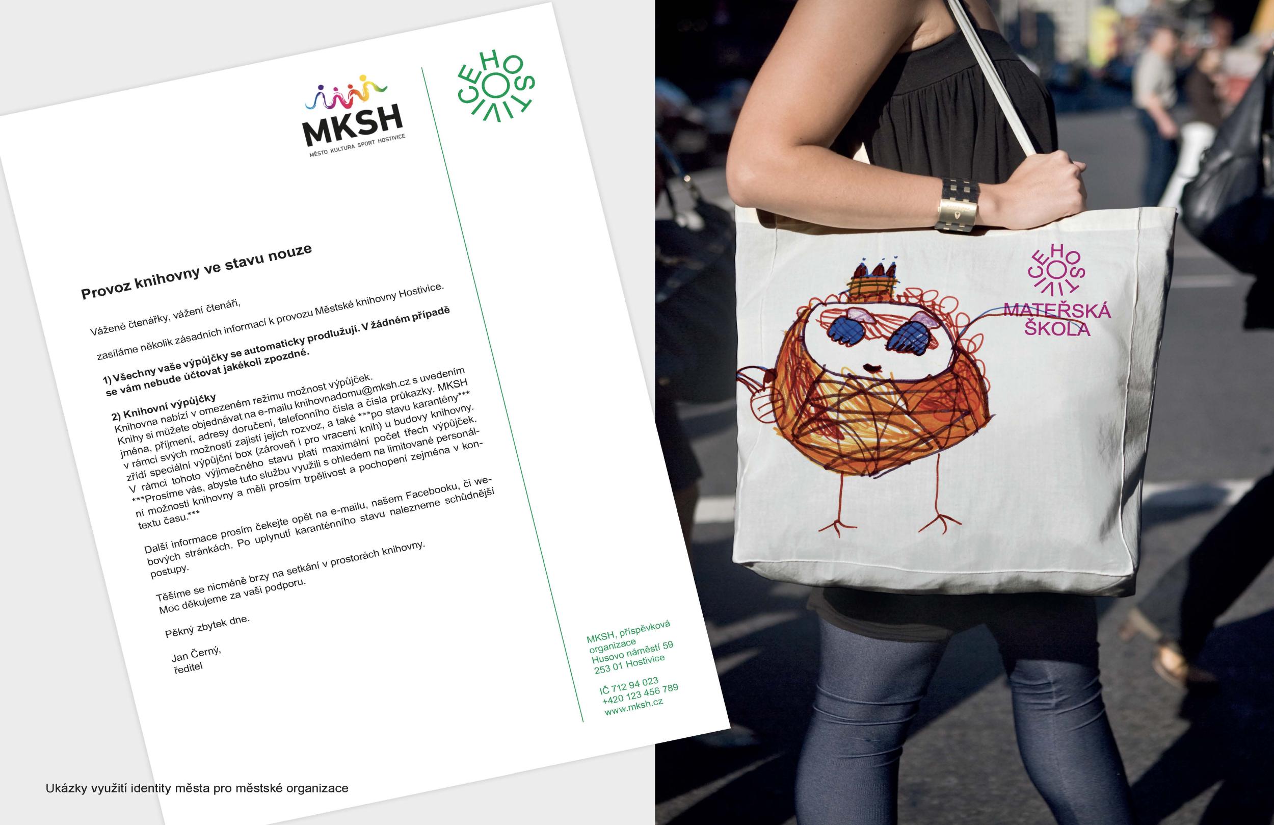 The Commission values the originality of the solution, based on the local identity that the proposal develops. The proposal is not based on differences, but on a connection. In its application, it works fine and is not based on any complicated aesthetic principle. Despite the distinctive appearance of the new symbol, the jury appreciates the non-violent typographic connection of the proposed symbol with the city organizations (Kindergarten, Municipal Police, etc.). Among other things, the new city symbol elegantly works with commonly available Arial fonts. The new symbol works well with the city emblem. Thanks to its great usability, the new city symbol has the chance to create an original city communication code that citizens will accept. Overall, the design of the identity of Hostivice looks dignified, harmonious, and does not lose its own dynamics.