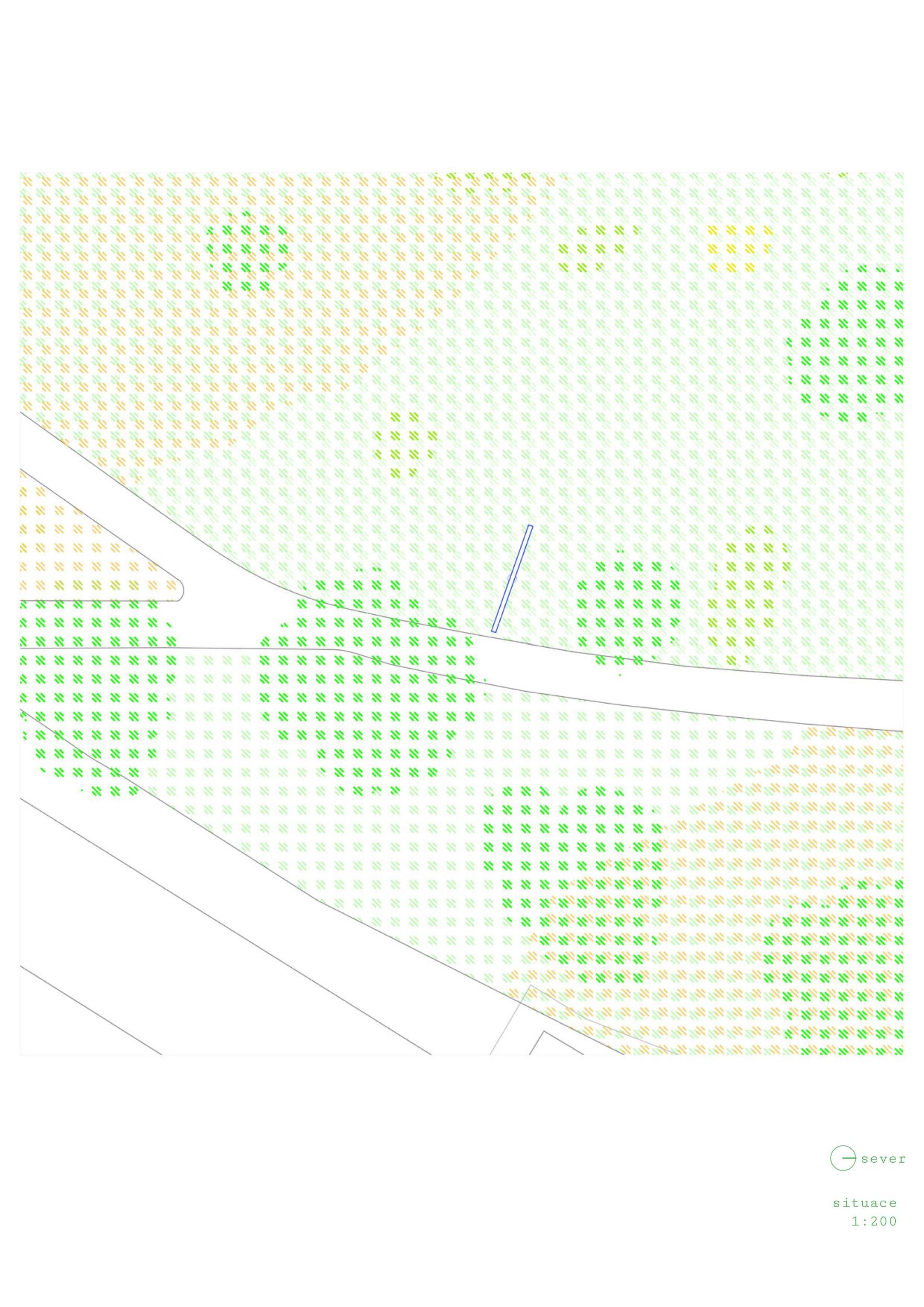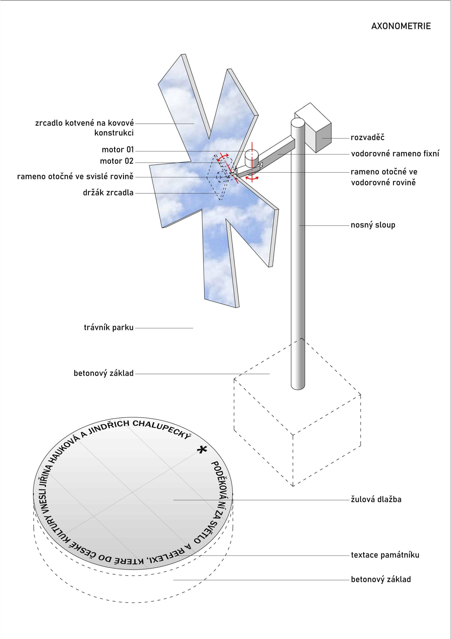 Hravý interaktivní návrh, který vtahuje do hry prostředí nádraží. Atraktivní je kinetika objektu a práce s odrazem slunečního světla. Objekt si říká o obyčejnou zvědavost – co to vlastně je, jak to funguje, proč hvězdička a proč vrhá "prasátko" na nádražní fasádu. Zároveň u něj ovšem chybí jasnější reference k Haukové a Chalupeckému – jasnější vysvětlení volby daného tvaru a zasazení do kontextu. Textový odkaz na zemi je v tomto ohledu prvoplánový.