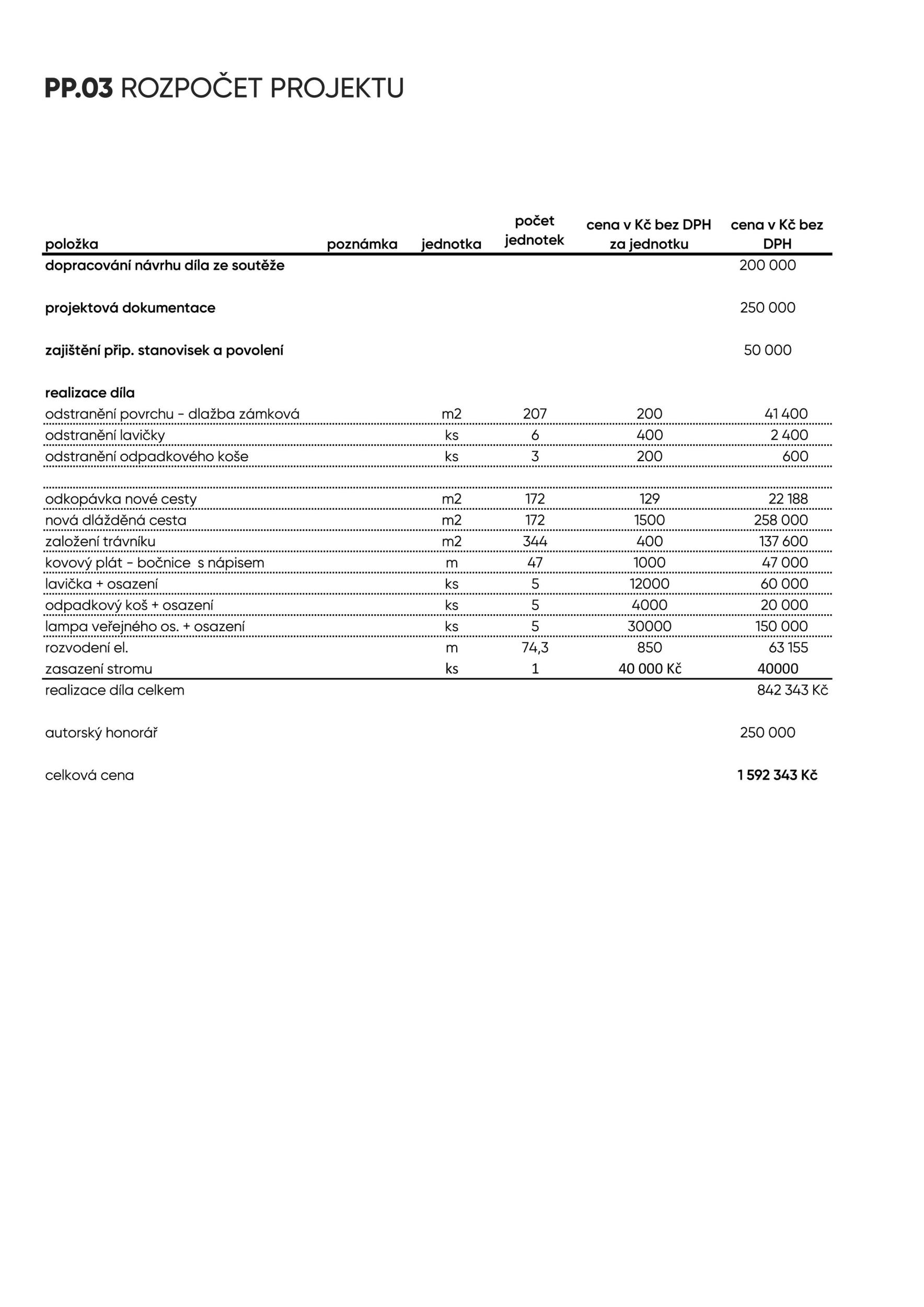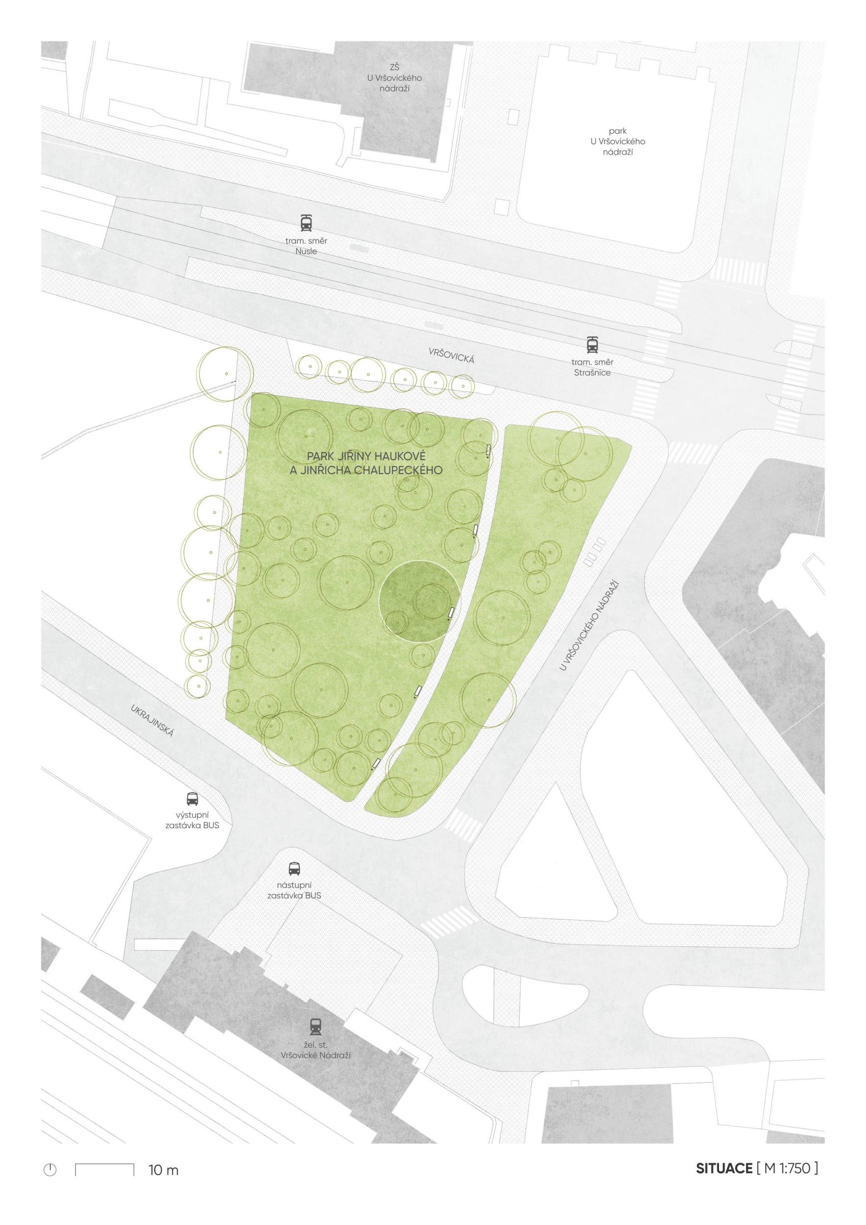 Vložení přírodního piedestalu, který jakoby mimoděk zdůrazňuje význam jinak obyčejného místa je na hranici banálnosti, přesto je koncept zvednutí úrovně parku o několik decimetrů v souvislosti s Chalupeckého i Haukové potřebou zviditelňování každodenní skutečnosti velice atraktivní. Velmi sympatický návrh akcentující samotné místo a život v něm jednoduchým, a přesto poetickým i promyšleným způsobem upozorňuje na každodennost. Návrh dle názoru poroty v konkurenci soutěže dobře vyhověl zmíněným kritériím stanoveným soutěžními podmínkami.