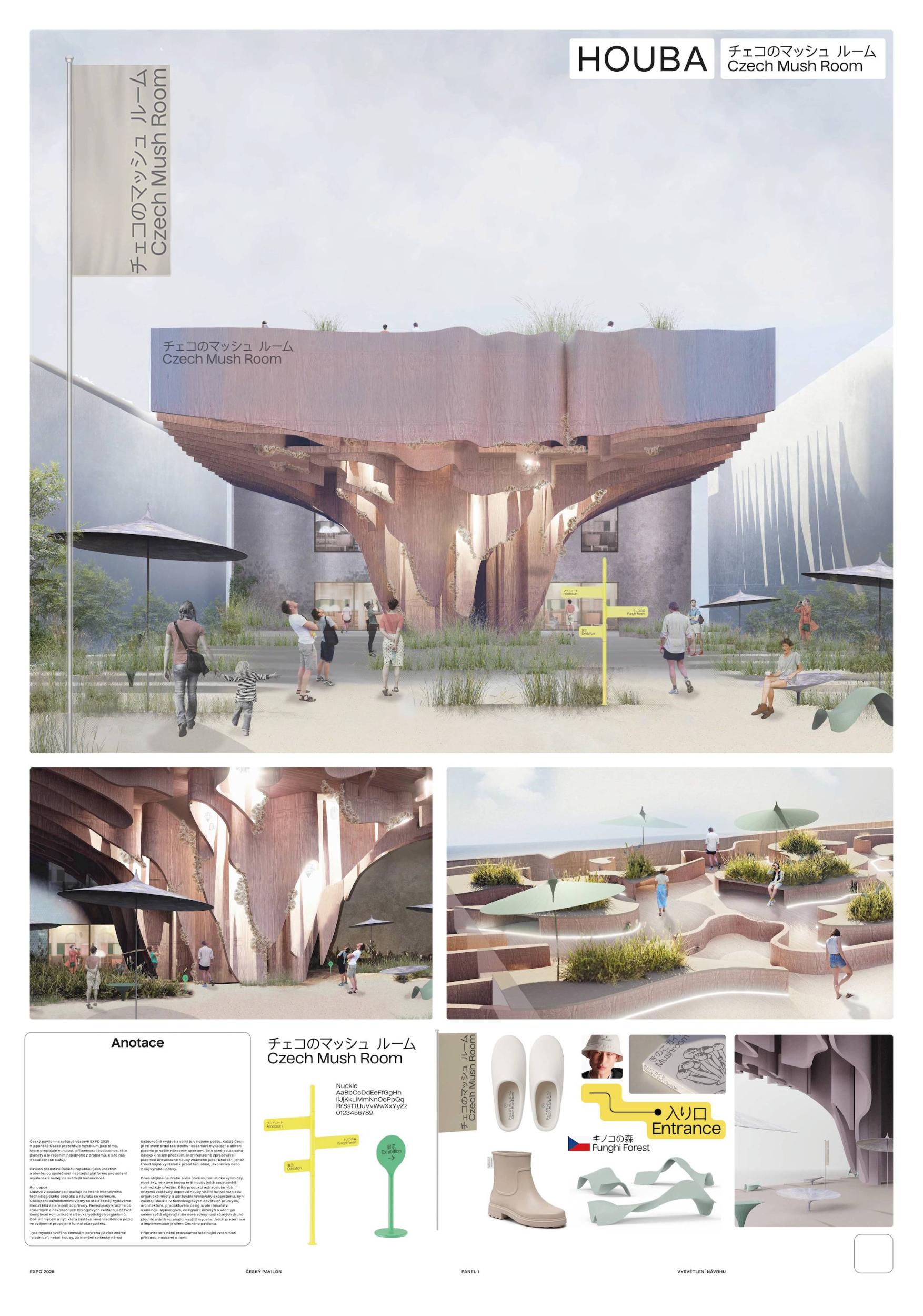 CZECH MUSH ROOM. Český pavilon na světové výstavě EXPO 2025 v japonské Ósace prezentuje mycelium jako téma, které propojuje minulost, přítomnost i budoucnost této planety a je řešením nejednoho z problémů, které nás v současnosti sužují. Pavilon představí Českou republiku jako kreativní a otevřenou společnost nabízející platformu pro sdílení myšlenek s nadějí na světlejší budoucnost.