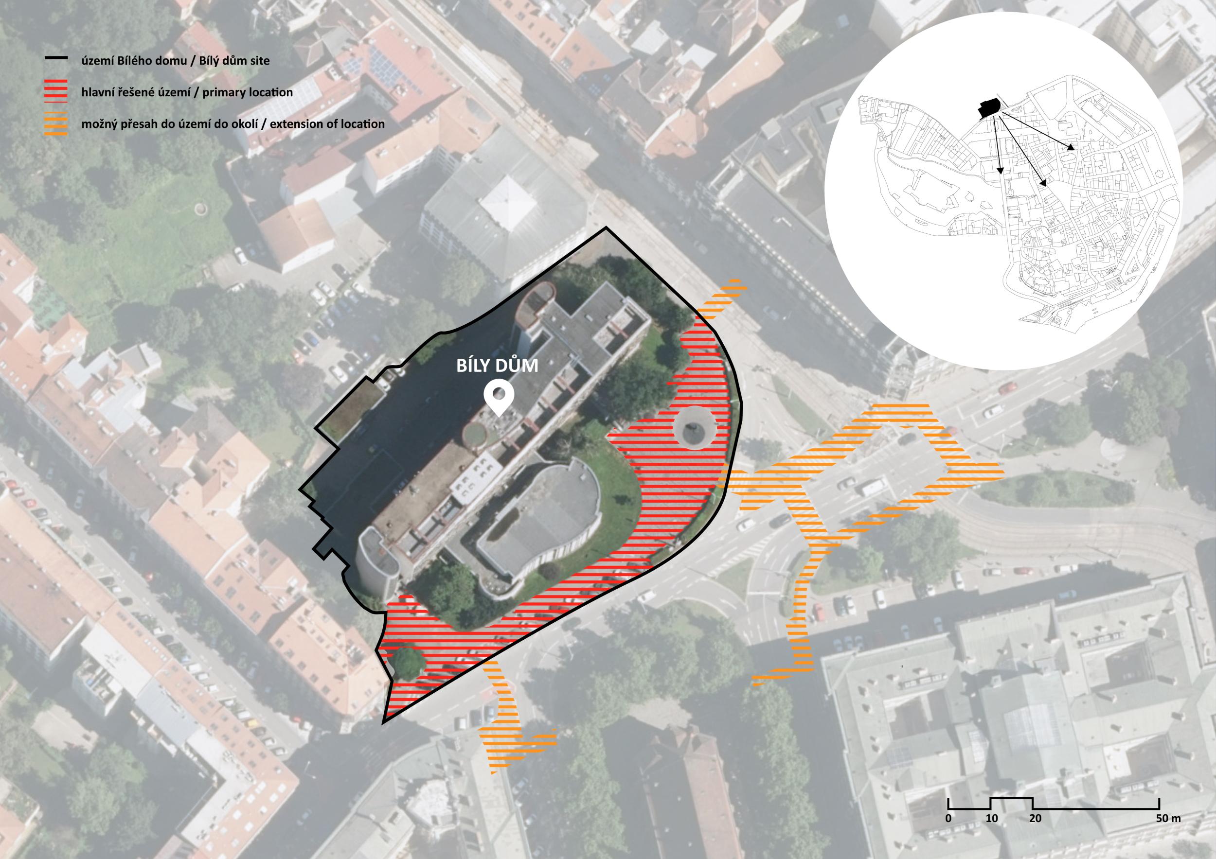 Bílý dům, unikátní stavba poválečného modernismu v centru města, dříve sloužil jako Městský výbor KSČ. Nyní se zde nachází dětská poliklinika, základní škola, sál s kapacitou 300 míst a kavárna. V roce 2027 se plánuje přesun polikliniky do nové budovy a další vývoj Bílého domu není zatím zcela jistý. Umělecká intervence by měla sloužit do doby změny provozu budovy. Cílem díla je nejen zpříjemnit veřejný prostor obyvatelům města a přímým uživatelům budovy, ale současně vzbudit o ni hlubší zájem a zvýšit zapojení veřejnosti do diskuze o její budoucnosti. Jedná se totiž o významnou stavbu v majetku města Brna, jejíž proměna by mohla vést ke vzniku kreativního a kulturního centra města.