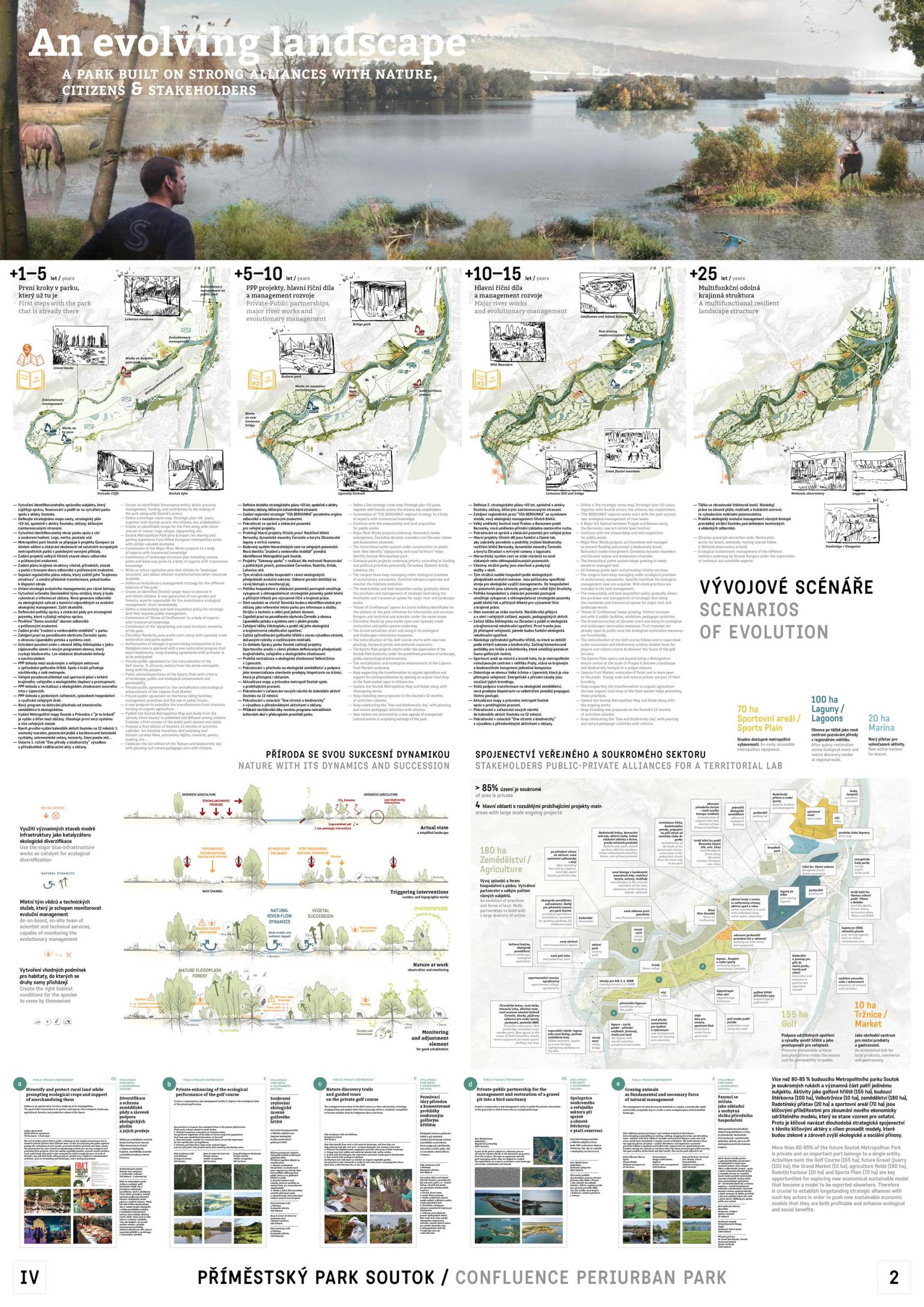 EMF + NORMA + PARETO / Norma: Jana Moravcová, Kristýna Zechmeisterová, Vanda Kotková, Anna Lochmanová, Alexandra Sypeňová, Jan Vacek; EMF landscape architects: Martí Franch Batllori, Carla Coromina‐Cabecera, Andrea Díaz‐Lacalle, Alexis Perrocheau, Carla Vilà‐Muñoz; Pareto Paysage: Héloïse Boujou, Simon Gabillard; spolupráce: Kateřina Koňata Dolejšová (grafika, vizuální styl), Jan Albert Šturma (ekologie), Jan Hraba (HKR advokátní kancelář ‐ právo), Lukáš Krejčí (Envicons – vodní hospodářství), Lukáš Makovský (urbánní ekonomie), Michaela Vrbková (umění a řemesla) / Španělsko, Česko, Francie