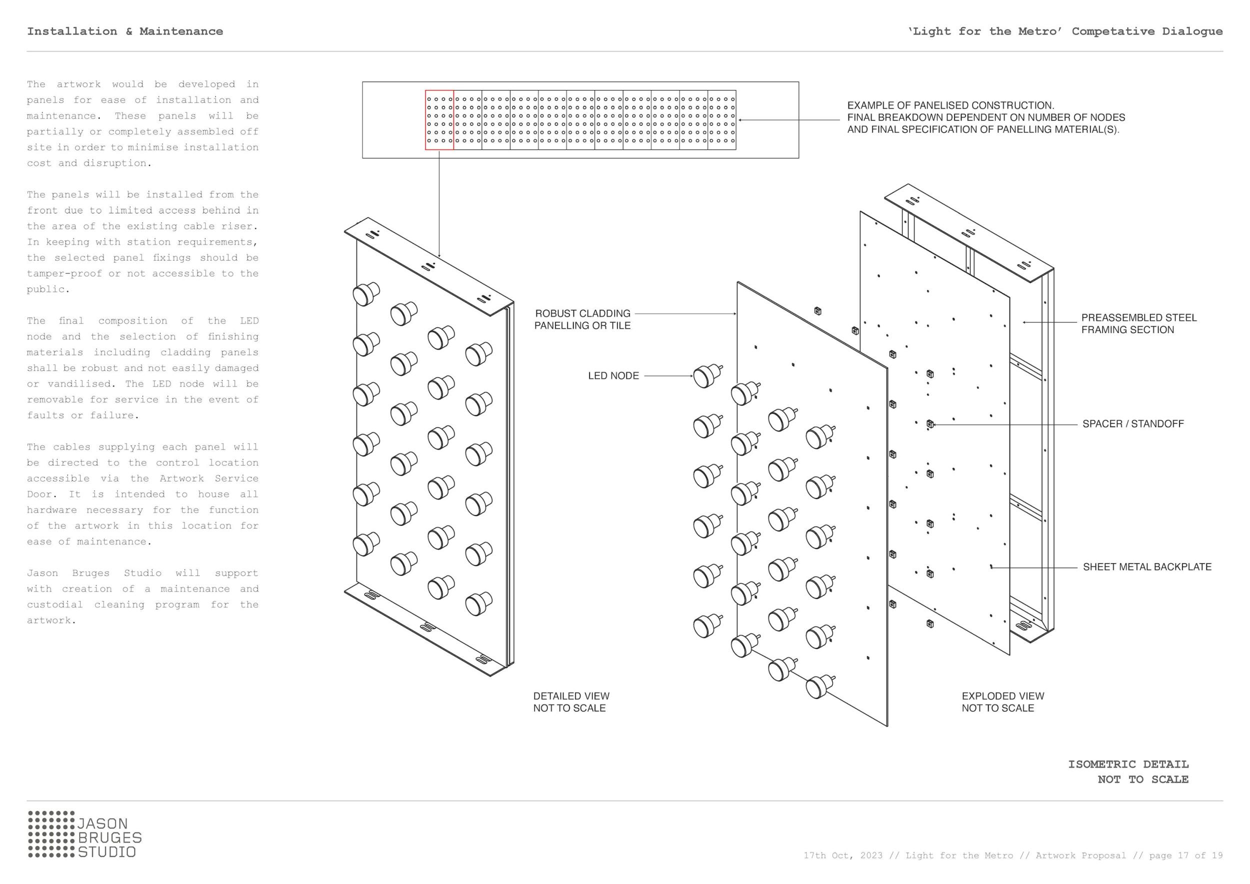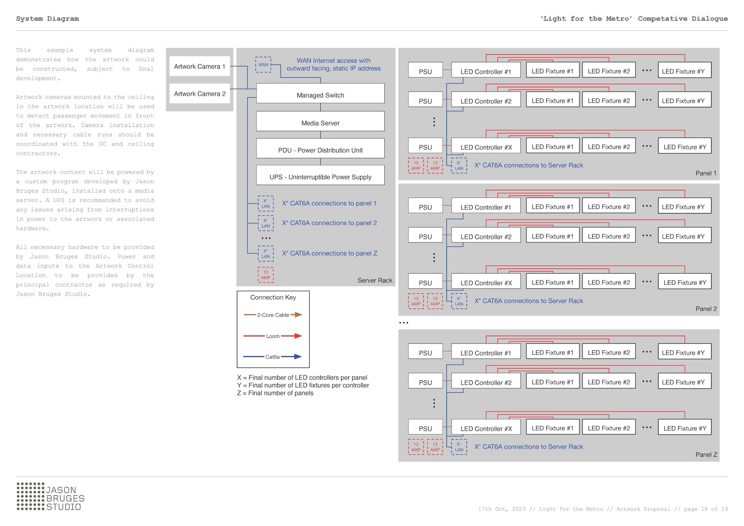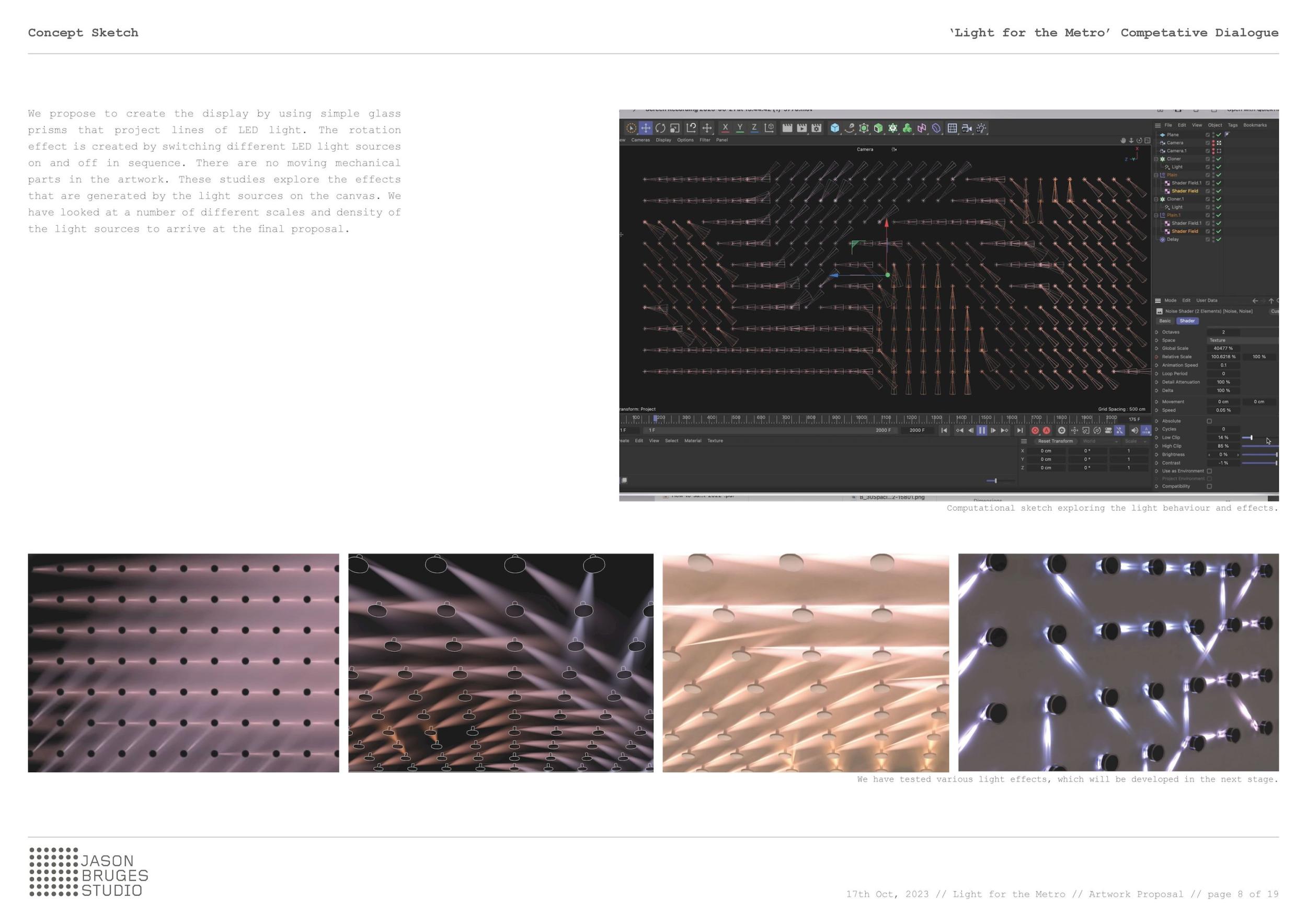 Metro vnímáme jako živý organismus složený z lidí, technologií a systémů. Chceme z těchto vlivů čerpat, abychom oživili naše umělecké dílo a představili metro jako dynamickou, živou entitu pomocí světla a směrového pohybu. Začali jsme náčrtem systému výhybek, které fungují jako miniaturní brány, ovládají a usměrňují světlo způsobem připomínajícím složitý železniční systém se vzájemně propojenými výhybkovými sekvencemi. Dílo tak zrcadlí metro a vytváří svůj vlastní nezávislý, autonomní svět.