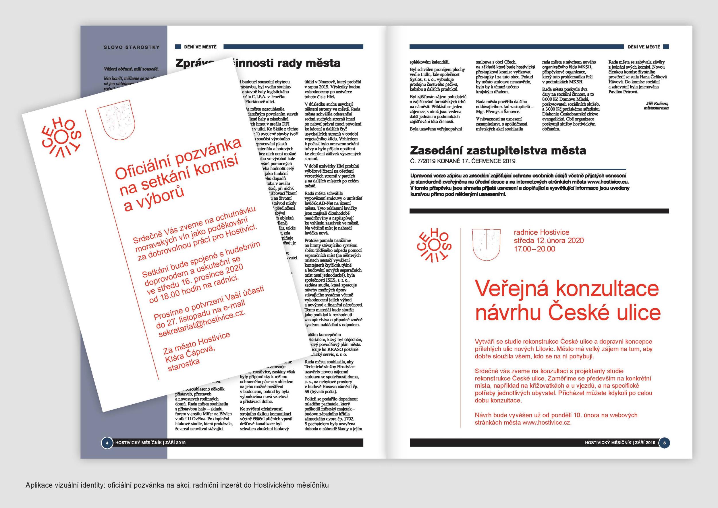 Předmětem výběrového řízení bylo nalezení celkového vizuálního stylu města Hostivice a městských organizací. Nový jednotný vizuální styl sjednotí roztříštěnou podobu vizuální prezentace města a městských organizací. Vizuální styl bude jako systém aplikovatelný i pro budoucí začlenění dalších městských subjektů.
