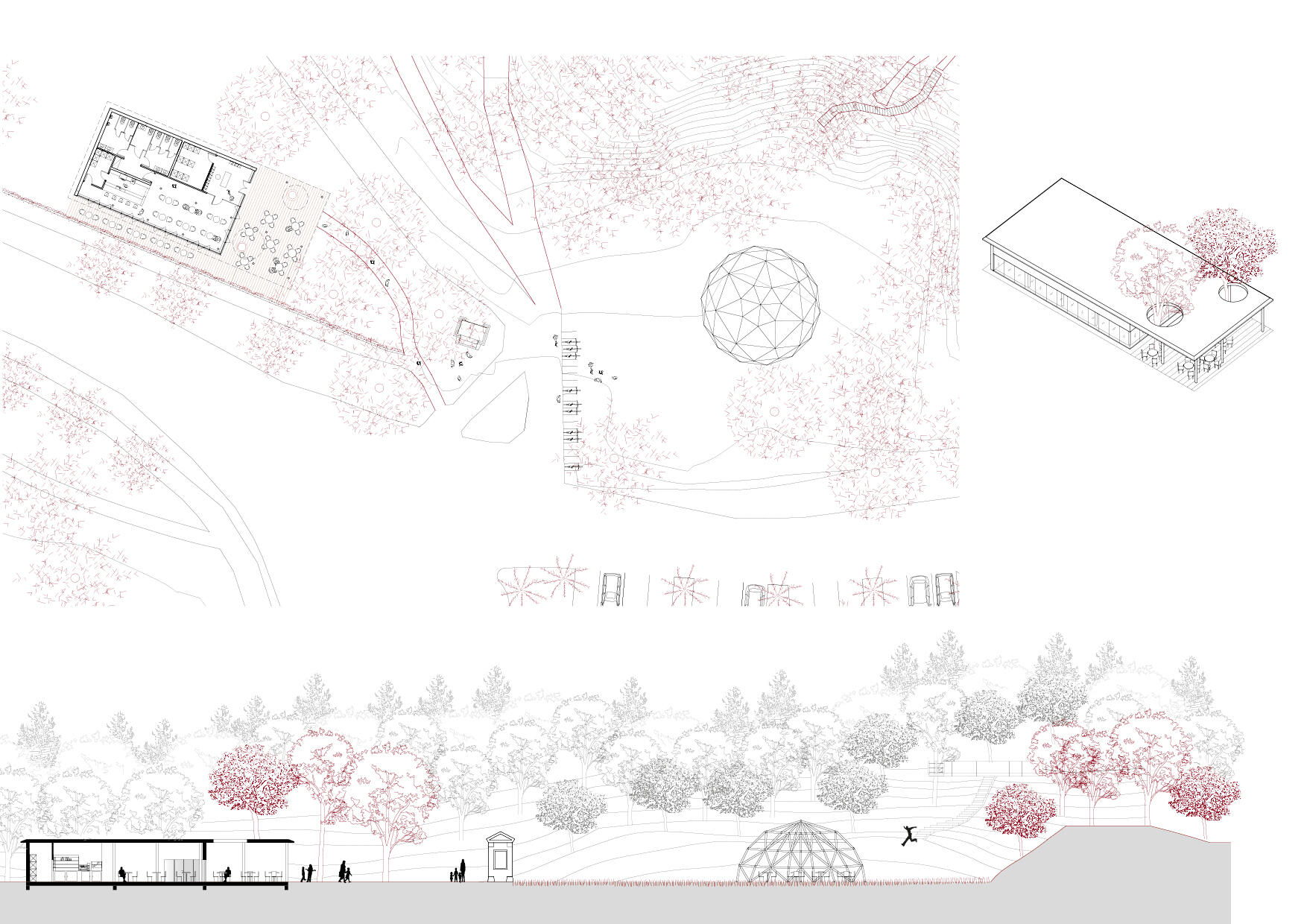 Na tento náš koncept porota reagovala několika doporučeními, s kterými se ztotožňujeme a předkládáme návrh, kde je původní koncept dopracován do podrobnějšího měřítka a se zapracovaným doporučením poroty. Kromě toho jsme se soustředili i na chápání návrhu jako součásti zelené infrastruktury, která je dnes aktuálním tématem na poli architektury. Zelenou infrastrukturu považujeme za nástroj pro důkladnější propojení a pochopení vzájemných vztahů mezi zastavěným a nezastavěným územím. Máme pocit, že legislativa posunula naše vnímání přírody do něčeho, co v sobě nezahrnuje homo sapiens a na druhou stranu barikády postavila město (zastavěné území), které je bráno jako protipól všeho živého kromě člověka. Lesopark V Zátiší v tomto kontextu vidíme jako ideální místo, kde můžeme příkladně ukázat užití zelené infrastruktury v malém měřítku a přispět k opětovnému chápání přírody a města jakožto celkového ekologického i ekonomického systému, do kterého patří vše, tedy i člověk.